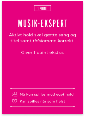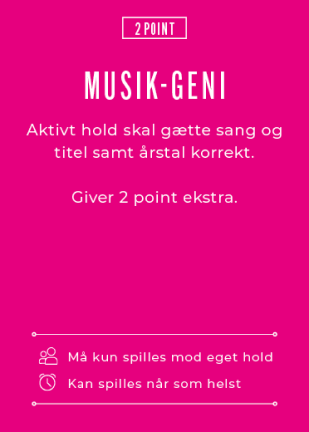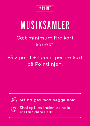 Brug dette kort til at score 1 ekstra point på en sang du mener at kende ekstra godt.