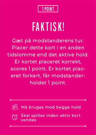 Var dit aktive kort placeret i den korrekte tidslomme scores der et point som normalt, var det aktive kort lagt i en forkert tidslomme fjernes kortet.