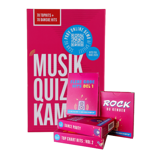 Musikquizkampen: MEGA pakken indeholder spillet Musikquizkampen og 4 tillægspakker efter eget valg! Du får 468 danske og internationale hits med denne pakke